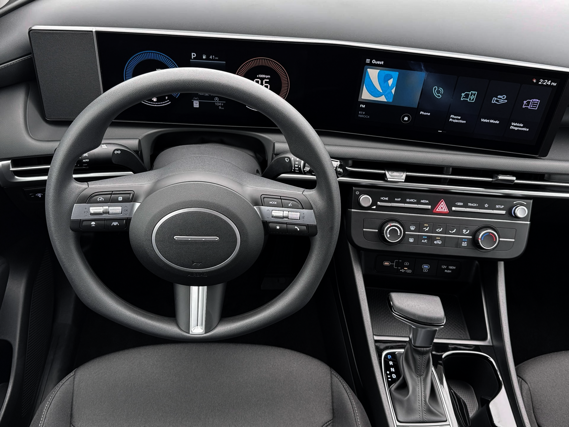 • Radio: AM/FM/HD Audio System -inc: 12.3" color touchscreen display, 6 speakers, SiriusXM satellite radio system (3-month trial subscription), wireless Apple CarPlay and Android Auto integration, controller OTA update capability, Blue Link connected car system and USB connectivity